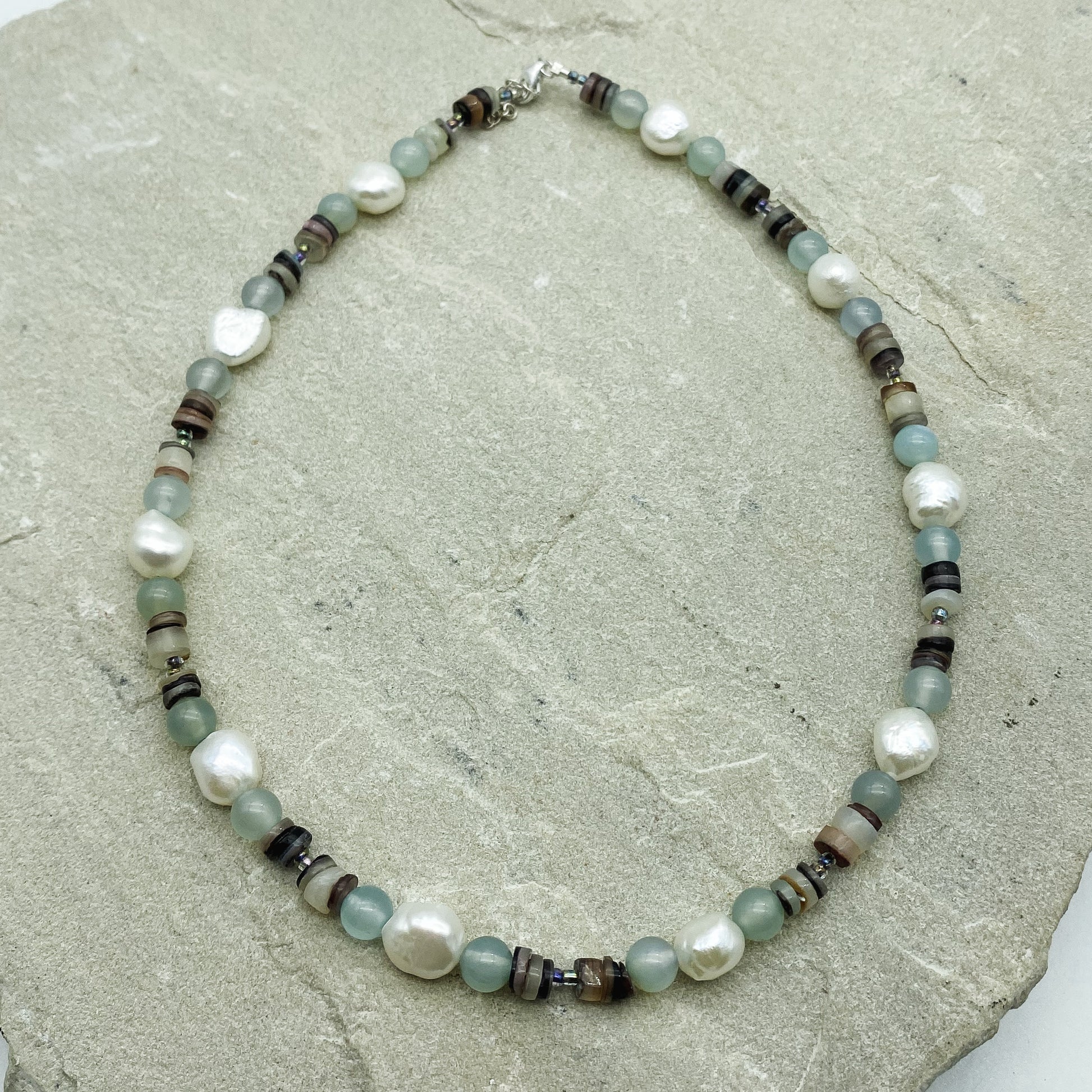 Slater Beaded Necklace - Blue Agate, Pearl, Shell
